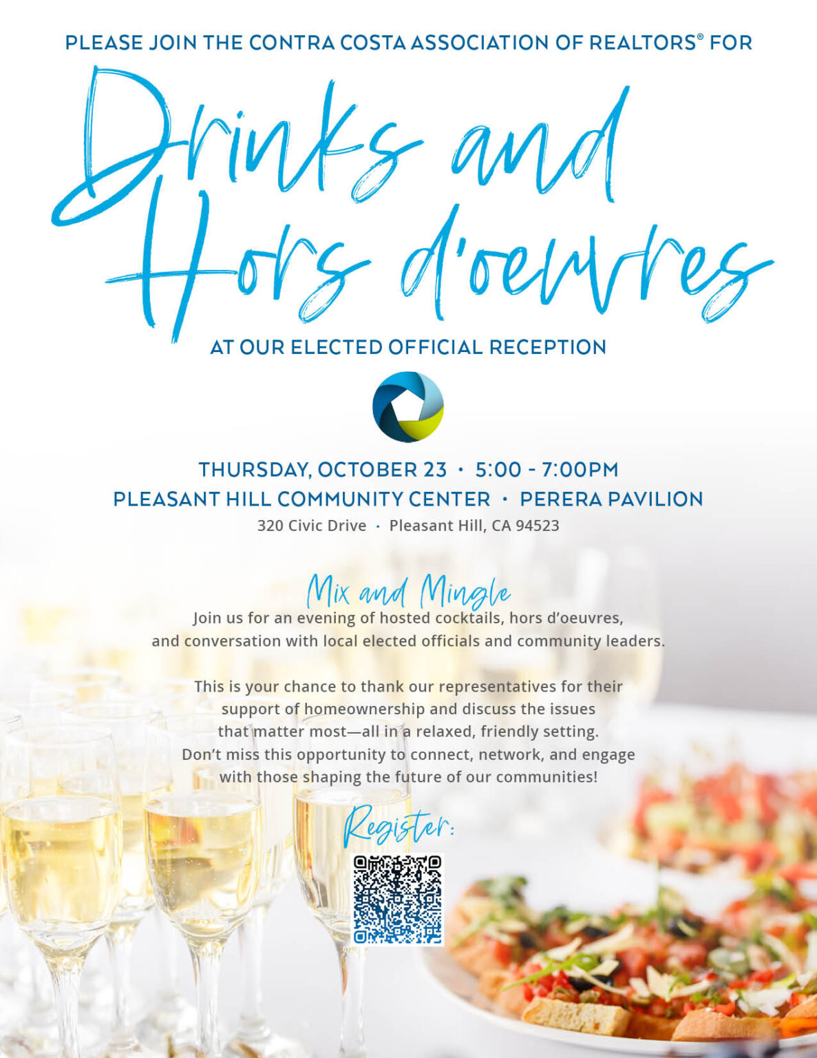 Join us for hosted cocktails and hors d’oeuvres while you mix and mingle with elected officials and key local decision-makers. Elected officials from cities within Central and West Contra Costa County have been invited, offering you a unique opportunity to personally thank them for their continued support in the fight for homeownership.