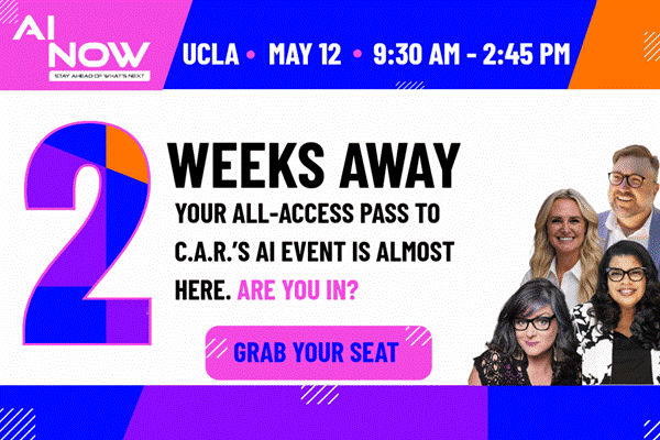 In just 2 weeks, C.A.R.’s brand-new event, AI NOW: Stay Ahead of What’s Next, comes to the UCLA campus in Los Angeles on Tuesday, May 12 — and seats are going fast!