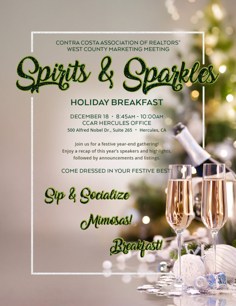 Join us for a festive morning at the CCAR Hercules Office from 8:45–10:45am, featuring a recap of this year’s highlights, announcements, your listings, and time to mingle over mimosas and breakfast. Festive attire encouraged!